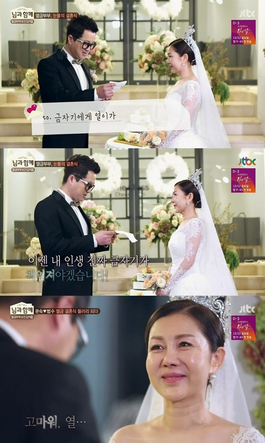 이어 지상렬은 "처음 '님과 함께'한다고 할 때 '너 미쳤냐'고, '안 어울린다'고 말한 사람들이 이제는 우릴 보면 잘 어울린다고 한다. 이제 금자기가 내 인생을 책임져야겠다"며 "아프지 말고 건강하게 오래 행복하자"고 말해 박준금을 감동케 했다.