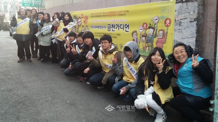 11일 서울 금천구 시흥동 은행나무사거리 일대에서 청소년들을 선도·보호하기 위한 주민단체 '금천가디언'이 청소년 유해업소 환경을 차단하기 위해 지정된 '청소년유해환경 클린거리'를 방문해 청소년 유해물 판매불가운동 등을 홍보하는 클린거리 캠페인을 진행했다. 사진은 캠페인 참여자들의 모습. (사진제공=금천구청)