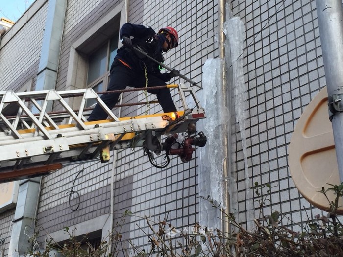 영등포소방서, 행인 안전위협 고드름 제거