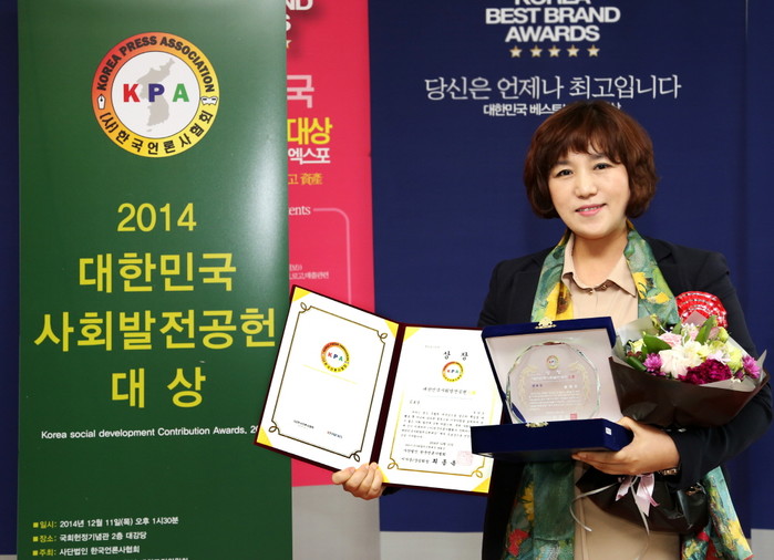 서울 노원구의회 봉양순 의원이 지난 11일 국회헌정기념관에서 열린 '2014 대한민국 사회발전공헌대상'에서 사회발전 공로상을 수상했다. 대한민국 사회발전공헌대상은 매년 국가와 지역사회 발전에 공헌한 기관이나 개인에게 주는 상이다. 사진은 봉 의원이 기념촬영을 하는 모습. (사진제공=노원구의회)