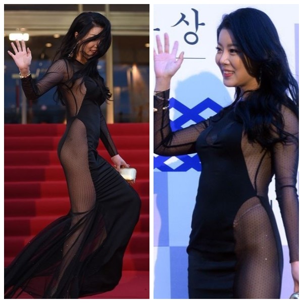 신예 노수람은 옆태가 그대로 드러나는 파격적인 시스루 드레스로 청룡영화제 레드카펫을 후끈하게 달궜다.