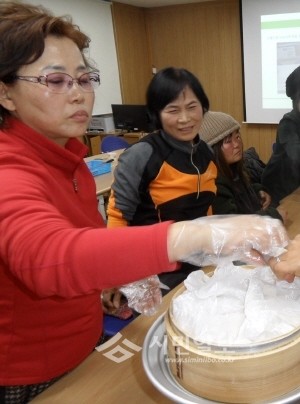 최근 경기 양주시 농업기술센터가 지역내 농촌체험마을 4곳에서 내년도 방문객들을 대상으로 운영할 신규 프로그램을 체험하는 '이야기가 있는 특별한 체험 시연회'를 열었다. 사진은 비암장수마을에서 도토리떡 만들기를 체험 중인 참여자들의 모습. (사진제공=양주시청)