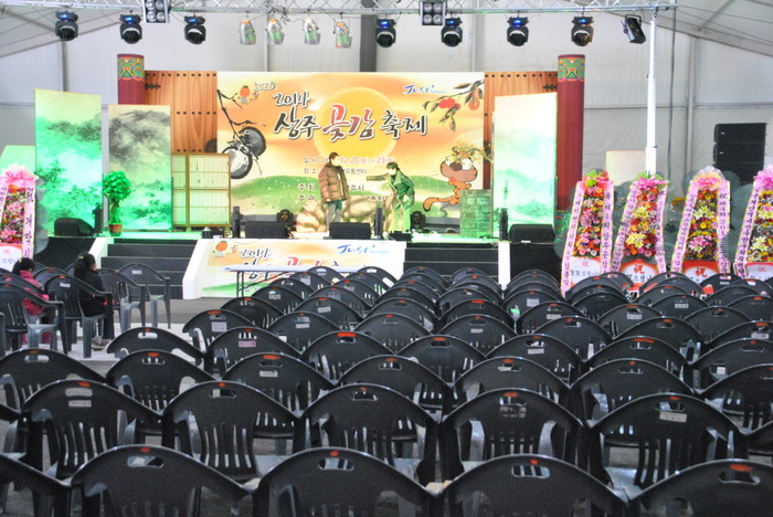 21일 경북 상주시 곶감유통센터에서 열리는 '2014 상주곶감축제'가 홍보부족과 졸속운영으로 시민과 관광객들로부터 외면 받고 있다. 상주곶감을 주제로 한 '호랑이보다 더 무서운 곶감' 연극 공연이 열리는 공연장에 관람객이 없어 썰렁하다. 상주곶감축제는 20~23일 상주곶감유통센터에서 열린다.