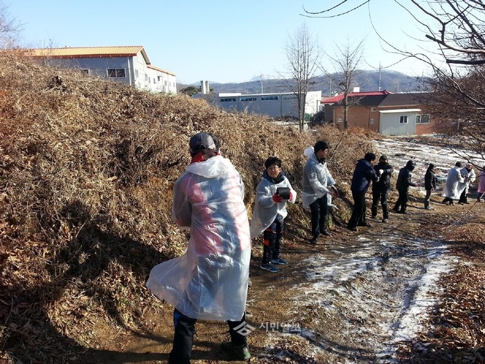 지난 20일 경기 고양시 일산동구 마두동 로고스교회 관계자 10명과 자원봉사자 40여명은 연말을 맞아 따뜻한 마음을 나누기 위해 고봉동내 어려운 가정에 직접 연탄을 전달했다. 사진은 이날 참가한 자원봉사자들이 연탄을 운반하고 있는 모습. (사진제공=일산구청)