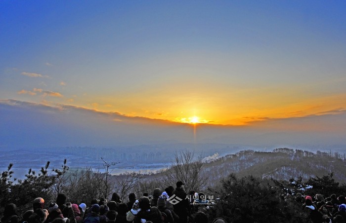 | ▲ 청마의 해 첫날인 지난 1월1일 시민들이 아차산에 떠오르는 일출을 바라보며 소망을 기원하고 있다. (사진제공=서울시청) | ||