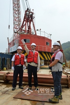 | ▲ 삼산연륙교 건설현장을 지도 중인 이상복 강화군수의 모습.(사진제공=강화군청) | ||