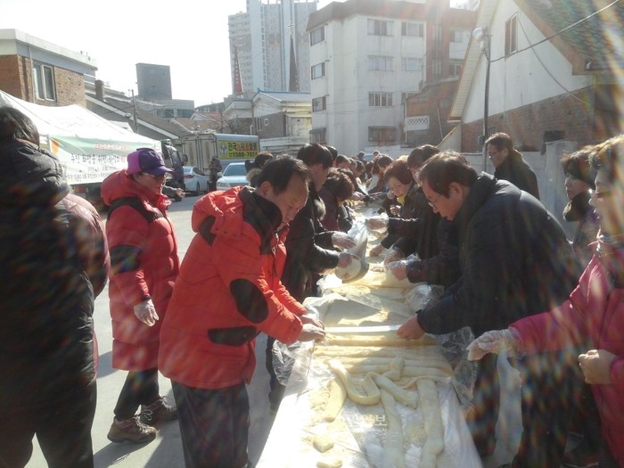 최근 인천 남구 도화2·3동 주민센터는 새해를 맞아 (주)전국24시콜화물의 후원으로 주민간 화합을 다짐하는 ‘사랑의 복(福), 인절미 나눔 행사’를 열어 인절미와 차를 먹으며 덕담을 나눴다. 사진은 인절미를 나누는 주민들의 모습. (사진제공=남구청)