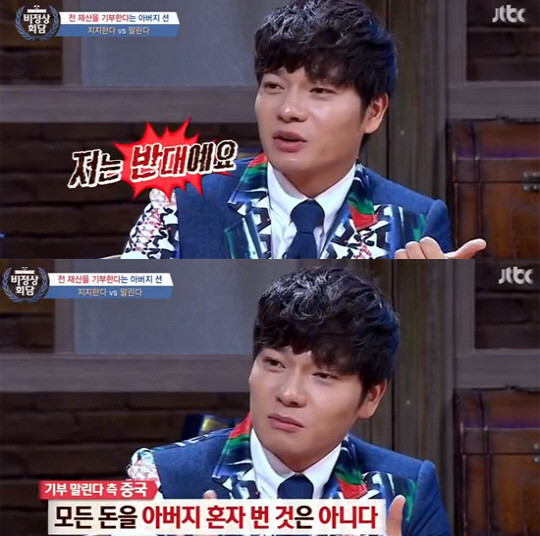 5일 방송된 jtbc <비정상회담>에는 가수 션이 게스트로 출연해 '좋은 세상 만들기'를 주제로 대화가 진행됐다. 이 자리에서 션은 매달 3000만원을 기부하고 여태까지 기부한 총 금액이 35억원임을 밝혔다.