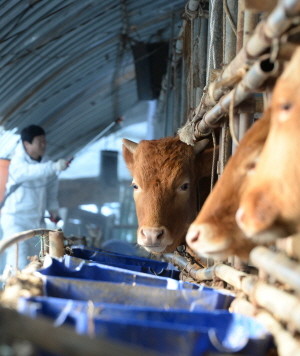 구제역 방역을 위해 8일 오후 대전시 대덕구의 한 축산농가에서 축산업자가 구제역 소독을 하고 있다.