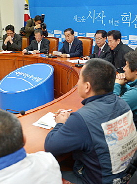 새정치민주연합-쌍용자동차 희생자 추모 및 해고자복직 범국민대책위 간담회가 열린 12일 오전 서울 여의도 국회 당 대표회의실에서 문희상 비대위원장이 인사말을 하고 있다.