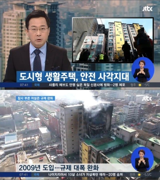 도시형 생활주택은 2009년 이명박정부 시절 서민주거안정을 위해 규제를 완화해 지을 수 있도록 한 건축물이다. 일반 아파트라면 건물 간격이 6m이상이어야 하지만 이번에 화재 피해를 입은 3개 동은 상업지역에 지어진 건물이기 때문에 일조권 적용을 받지 않아 건물 간격이 최소 50cm만 넘으면 된다. 실제로 건물 간 간격은 1.5m에 불과했다. 때문에 화재가 옆 건물로 쉽게 옮겨붇을 수 있었다.