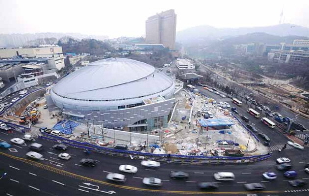 리모델링을 마치고 오는 17일 장충체육관이 개관한다. 사진은 5일 오후 서울 중구 장충체육관의 모습.