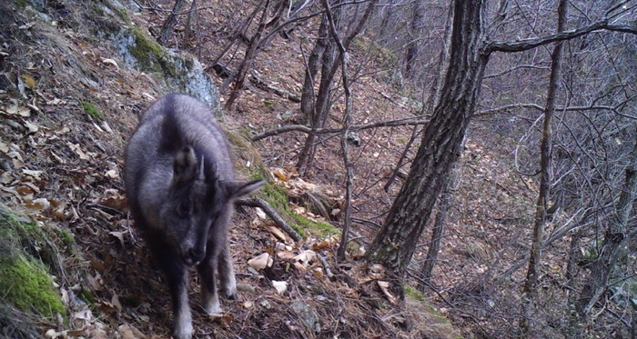 대구지방환경청은 19일 산양 서식실태 및 행동특성에 관한 연구 결과 경북 울진군과 봉화군 일원에 멸종위기야생생물 1급인 산양이 최소 60마리 이상 서식하고 있는 것으로 확인됐다고 밝혔다. 사진은 무인카메라에 촬영된 산양의 모습.