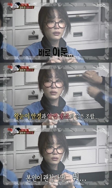 이후 부대 내에서 화장을 지운 강예원의 모습이 공개됐고, 커다란 돋보기 안경을 쓴 채 안면홍조 현상으로 얼굴이 붉어진 모습은 시청자들의 눈길을 끌었다.