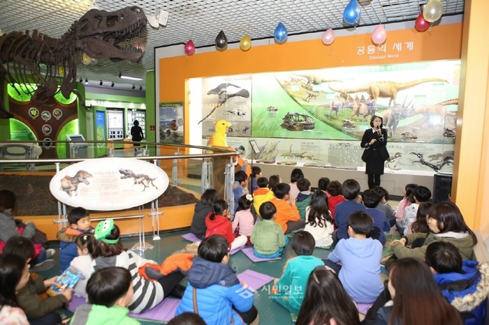 이달 16~19일 인천교육과학연구원에서 방학을 맞은 초등학생들을 대상으로 공룡에 관한 호기심을 해결하고 환경보전이 중요성을 일깨우는 내용으로 구성된 '공룡 어드벤처'가 열렸다. 사진은 행사에 참여한 초등학생들이 강사로부터 공룡에 대한 설명을 듣고 있는 모습. (사진제공=인천광역시교육청)