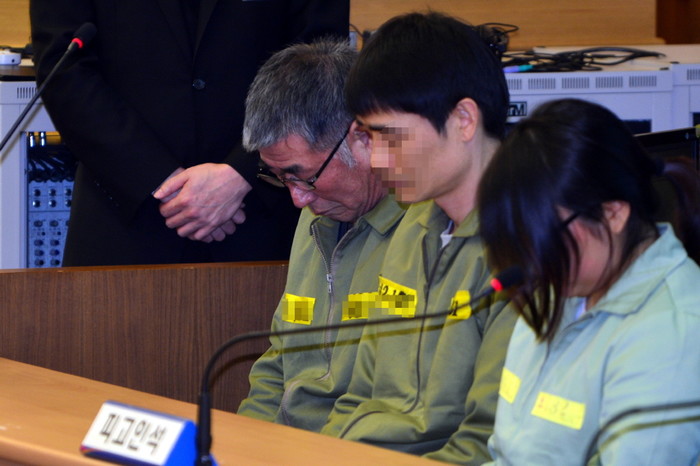 20일 오후 광주 동구 광주고등법원 201호 법정에서 세월호 선원에 대한 항소심 재판 준비기일이 열리기에 앞서 이준석 선장과 선원들이 피고인석에 앉아 재판 시작을 기다리고 있다.