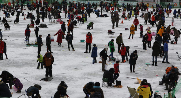 얼음낚시터 가득 메운 사람들