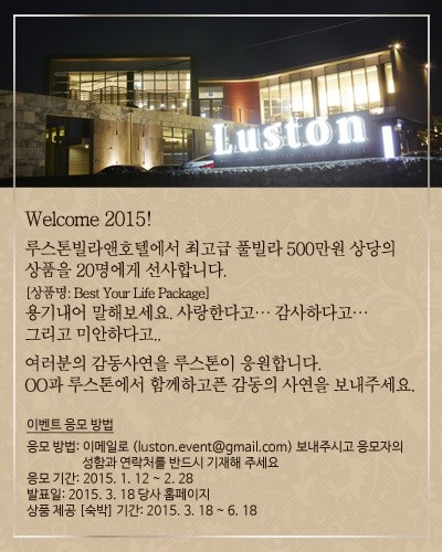 이처럼 급속한 성장을 하고 있는 루스톤빌라앤호텔에서 새해를 맞아 1월12일부터 시작된 'WELCOME 2015' 프로모션 Part2는 수 많은 사람들의 관심을 끌고 있다.