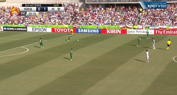 이란은 23일 호주 캔버라의 캔버라 스타디움에서 열린 '2015 AFC 호주 아시안컵 8강전'에서 전반 23분 자푸리가 이라크 진영에서 볼을 우측에서 크로스 올린 것을 아즈문이 헤딩으로 연결시키며 선취 득점에 성공했다.