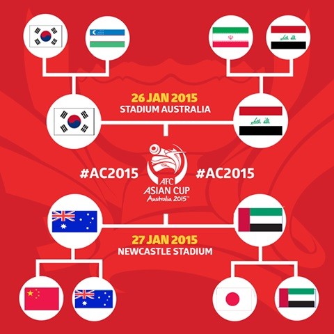 한국과 이라크는 26일(이하 한국시간) 오후 6시 호주 스타디움 오스트레일리아에서 '2015 AFC 아시안컵' 결승 진출을 놓고 한판 승부를 벌인다.