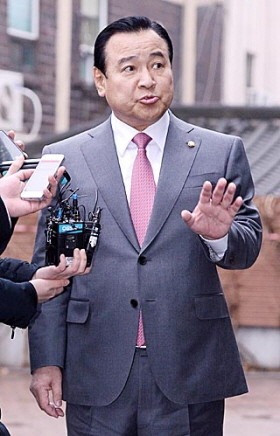 이완구 국무총리 후보자가 26일 오전 청문회 준비를 위해 서울 종로구 금융감독원 연수원에 마련된 집무실로 출근을 하며 취재진 질문에 답하고 있다.