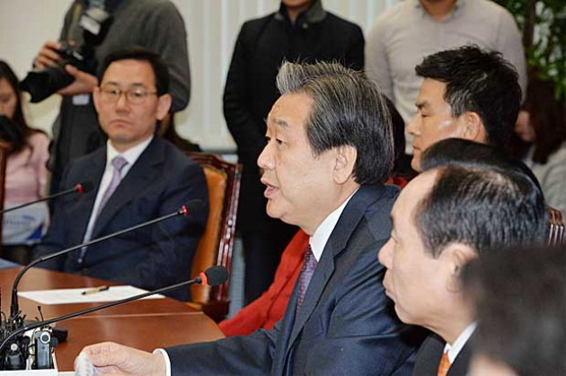 28일 오전 서울 여의도 국회 새누리당 대표실에서 열린 최고중진연석회의에서 김무성 대표가 정부의 각 부처가 어제 내놓은 2015년 주요추진법안 관련 이야기하고 있다.