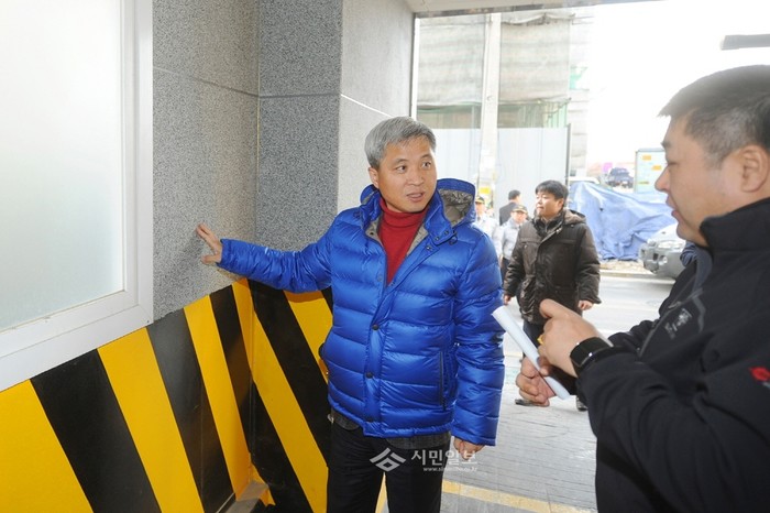 최근 곽상욱 경기 오산시장이 최근 발생한 의정부 도시형생활주택 사고로 커져가는 지역 주민들의 불안감을 해소하기 위해 경찰 관계자, 건축사 등으로 구성된 점검반을 꾸리고 지역내 같은 용도 건축물에 대한 안전점검을 실시했다. 사진은 현장을 점검 중인 곽 시장과 관계자들의 모습.(사진제공=오산시청)