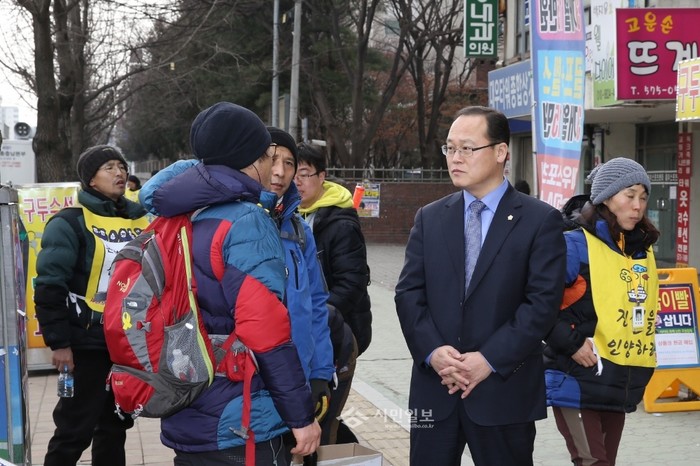 | ▲ 성준모 의장이 29일 천안시에서 세월호 가족협의회 회원들을 만나 격려하고 일부 구간을 함께 걸었다. | ||
