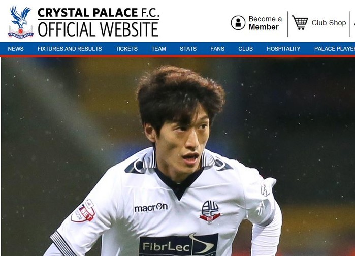| ▲ 이적이 임박한 것으로 알려진 크리스탈 팰리스 홈페이지에 이미 사진이 올라간 이청용 (사진출처=크리스탈 팰리스) | ||