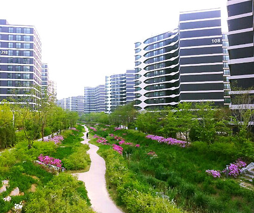 단지 옆으로 9홀 규모의 수원 공군 골프장이 있으며, 생태하천으로 복원된 길이 2.6㎞의 장다리천과 우시장천이 흐르고 있다.