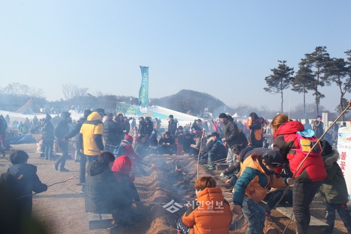 경기 연천군 전곡리 유적지 인근에서 열린 '2015 연천 구석기 겨울여행' 축제에 30만명이 넘는 관광객이 방문해 구석기의 생활상을 체험하고 지난 1일 성황리에 폐막했다. 사진은 축제장을 방문한 관광객들이 원시생활 체험의 일환으로 고기를 구워먹는 모습.
