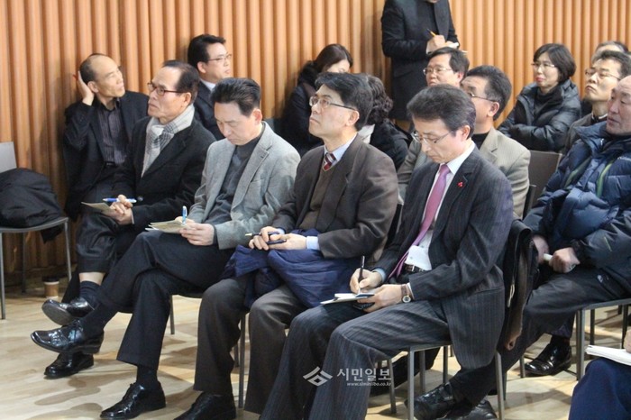 최근 서울 노승재 송파구부의장, 김중광 의원, 윤영한 의원이 풍납동 서울영어체험 마을 대강당에서 열린 ‘풍납토성 보존관리 및 활용 기본계획 변경 주민설명회’에 참석해, 풍납토성 보존관리 및 활용 기본계획의 주요 변경사항에 대한 문화재청 관계자의 설명을 듣고 있다. (사진제공=송파구의회)