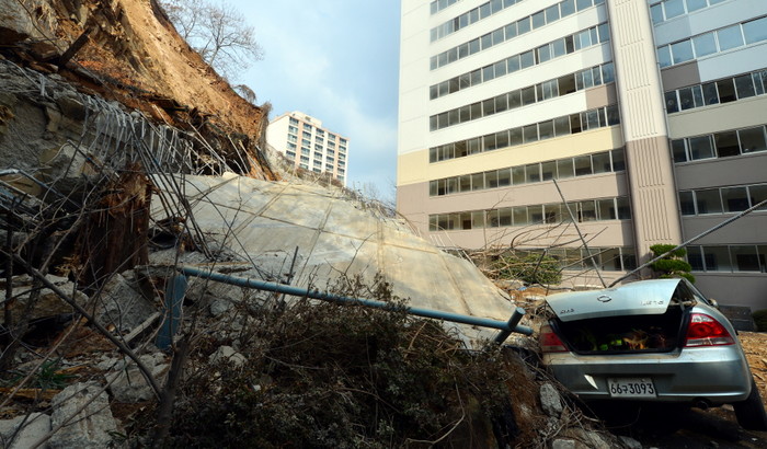 광주 아파트 옹벽 와르르