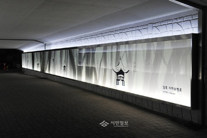 광주시청 앞 지하보행로는 개선하기 전 과거 토목공사 위주의 콘크리트 구조물로 삭막한 환경이었으나, 개선 후 밀목 지하보행로는 지금 시청이 자리 잡고 있는 뒷편으로 송림이 우거지고 왕손들 소유의 정자(亭子)가 여럿 있었다고 해 '소나무 숲 사이로 이야기가 흐르는 풍경길'이라는 개념으로 디자인됐다.