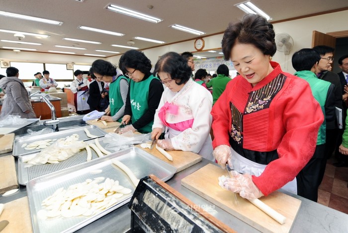 서울 동대문구(구청장 유덕열)가 지난 11일 동대문구민회관에서 새마을운동 동대문구지회가 준비한 '설맞이 사랑의 떡국떡 나누기 행사'를 개최했다. 행사에는 다문화가정·북한이탈주민이 함께 참여해 직접 떡국떡을 썰고 우리 명절을 이해하는 시간을 보냈다. (사진제공=동대문구청)