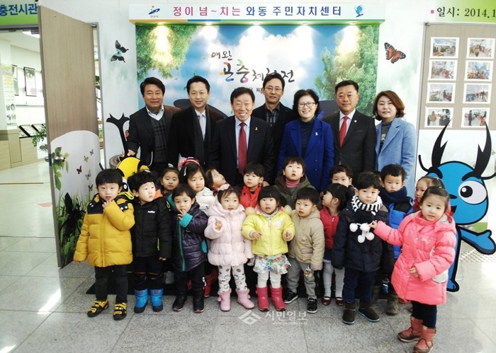 | ▲ 시정목표 가운데 하나로 안산시는 '생태'를 주제로 꽃·나비·벌이 어우러지는 생태환경도시 조성에 나서기로 했다. 사진은 곤충체험전에서 아이들과 기념촬영 중인 제 시장의 모습. (사진제공=안산시청) | ||