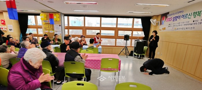 지난 14일 차성수 서울 금천구청장이 지역내 금천어르신복지센터, 금천호암노인복지관의 설맞이 나눔행사에 참석했다. 차 구청장은 행사에 참여한 주민들에게 큰절을 하며 오래오래 건강하길 바란다고 인사했다. 사진은 큰절 중인 차 구청장(오른쪽)의 모습.(사진제공=금천구청)