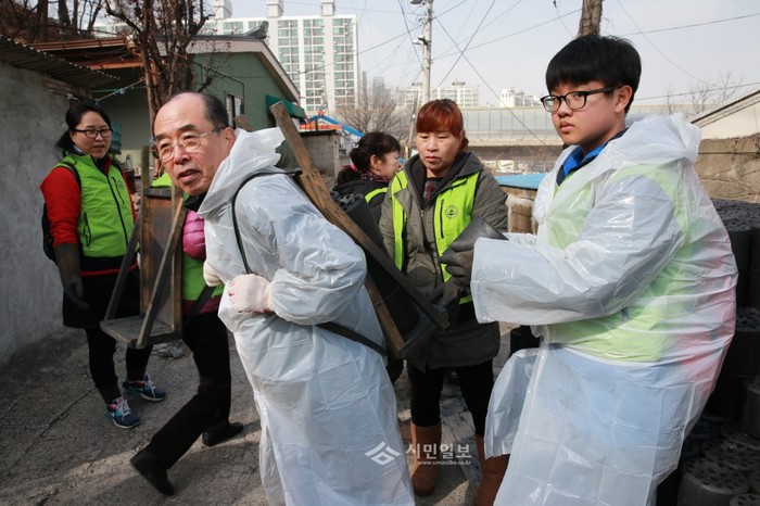 인천 남구 주민자치협의회가 지난 23일 학익동 양토마을 30여가구에 사랑의 연탄 6000장을 배달했다. 연탄은 협의회가 기탁한 기금으로 마련됐으며, 배달에는 남구의회 의원들과 각동 주민자치위원장, 자원봉사자 등이 참여했다. 사진은 남구의회 의원들과 자원봉사자들이 연탄을 배달하고 있는 모습. (사진제공=남구청)