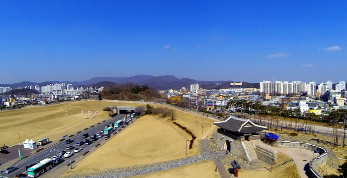 최악의 황사가 물러나고 화창한 날씨를 보인 24일 오후 경기 수원 화성(華城)과 도심 위로 푸른 하늘이 보이고 있다.