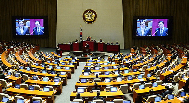제331회 국회(임시회) 본회의가 열린 25일 오전 서울 여의도 국회 본회의장에서 이완구 국무총리가 새정치민주연합 이해찬 의원의 질문에 답하고 있다.