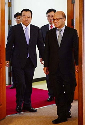 이완구 국무총리가 2일 오후 서울 종로구 헌법재판소를 방문해 박한철 헌법재판소장의 안내를 받고 있다. 이완구 총리는 이날 신임 인사차 양승태 대법원장과 박한철 헌법재판소장을 예방한다.
