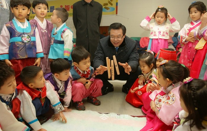 어린이들과 윷노는 성장현 서울 용산구청장