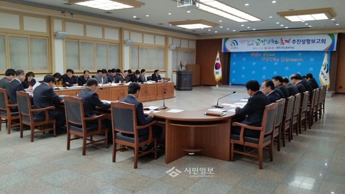지난 9일 대전 대덕구가 ‘봄꽃과 함께하는 2015 금강로하스축제(이하 금강로하스축제)’를 위해 중회의실에서 개최한 추진상황보고회에서 관계자들이 각종 체험프로그램과 부서별 진행사항 등의 내용을 점검하고 있다.(사진제공=대덕구청)