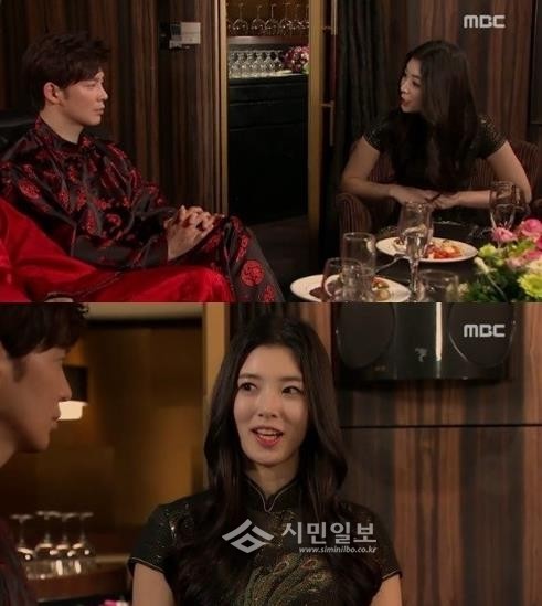 이날 유승옥은 중국 전통 의상 치파오를 입고 이를 멋지게 소화하며 첫등장했다. 파티에 모인 박하나(백야 역)는 유승옥(유레카 역)이 극중 드라마 '달과 꽃'에 여주인공으로 출연 확정돼 기뻐하는 모습을 보며 질투한다