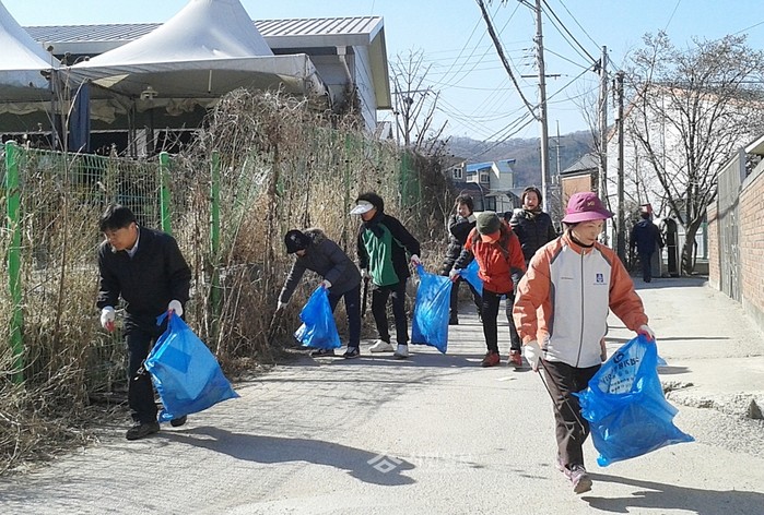 지난 12일 경기 하남시 신장 2동 및 천현동 주민센터 공무원과 주민들이 봄 맞이 준비를 위해 동별 환경정화 활동을 펼쳐 4톤 가량의 쓰레기를 수거했다. 사진은 환경정화 활동을 펼치고 있는 주민들의 모습. (사진제공=하남시청)