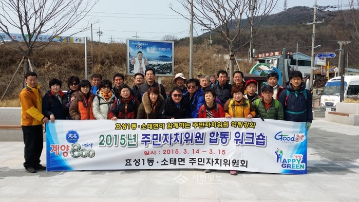 인천 계양구 효성1동 주민센터는 지난 14~15일 주민자치위원회 위원 30여명이 참석한 가운데 역량강화 워크숍을 실시했다. 덕적도에서 진행된 이번 워크숍에서는 역량강화 교육과 추진사업 관련 토론 등이 진행됐다. 사진은 지난 15일 워크숍에 참석한 주민자치위원회 위원들이 기념촬영을 한 모습. (사진제공=계양구청)