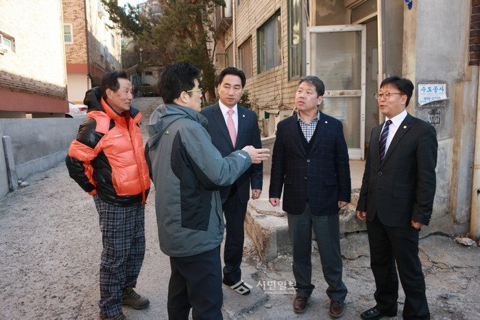 | ▲ 서울 강북구의회 최고고도지구 완화 특별위원들이 최근 최고고도지구내 수유동 삼흥연립 현장방문을 실시했다. 사진은 삼흥연립을 방문한 최고고도지구 완화 특위 위원들이 현장을 둘러보며 주민 및 관계자들과 대화를 나누고 있는 모습. (사진제공=강북구의회) |