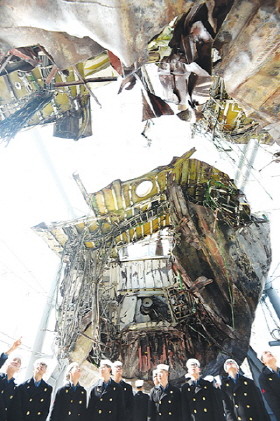 천안함 사건 5주기를 일주일 앞둔 19일 오전 경기 평택 해군2함대에서 평택지역 해군 장병들이 천안함을 살펴보고 있다.