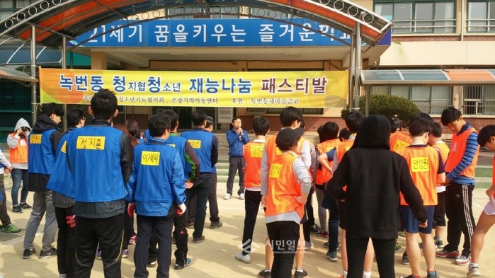 지난 21일 서울 은평구 녹번초등학교에서 청소년지도협의회와 은광지역아동센터의 협약으로 개최한 ‘청청 재능나눔 페스티벌 명랑운동회’가 열렸다. 사진은 운동회 개회식 모습. (사진제공=은평구청)