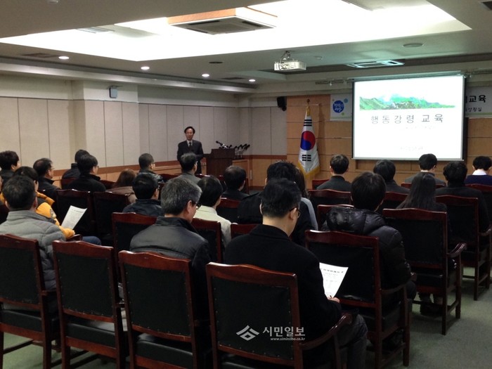 강북구가 지난 23일 구청 기획상황실에서 2015년 신규직원 및 전입직원 전원을 대상으로 청렴교육을 실시했다. 이날 교육은 '서울특별시 강북구 공무원 행동강령'과 '위반자에 대한 조치', '2015년 강북구 주요 청렴시책' 등에 관한 내용으로 구성됐다. 사진은 이날 교육에 참여한 구청 직원들의 모습. (사진제공=강북구청)